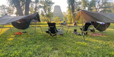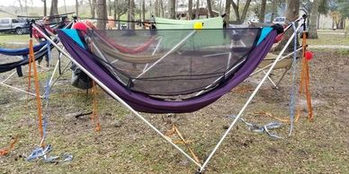 We travel to various hammock hangs, camping events, motorcycle events, and other outdoor events to teach people how to properly camp in hammocks.